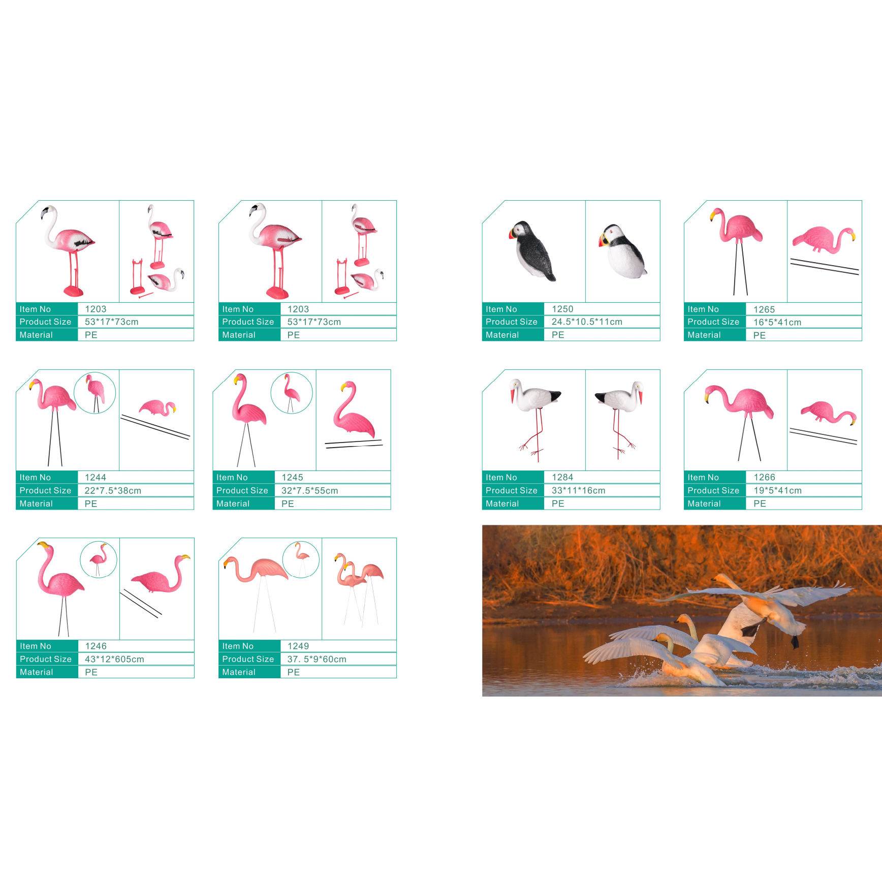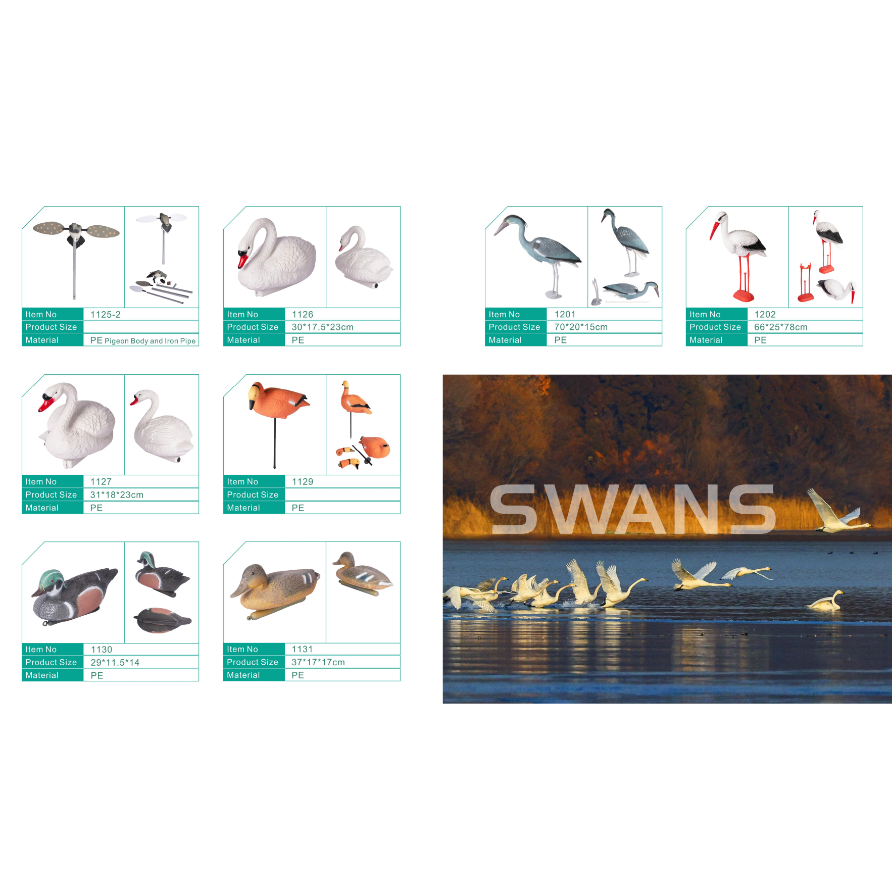 We offer a variety of functional options, including electric, wind-powered, and sound-enabled decoys, allowing clients to select or develop products that match specific environmental conditions or market demands. Each decoy is crafted with attention to realism, durability, and functionality to ensure long-lasting performance.