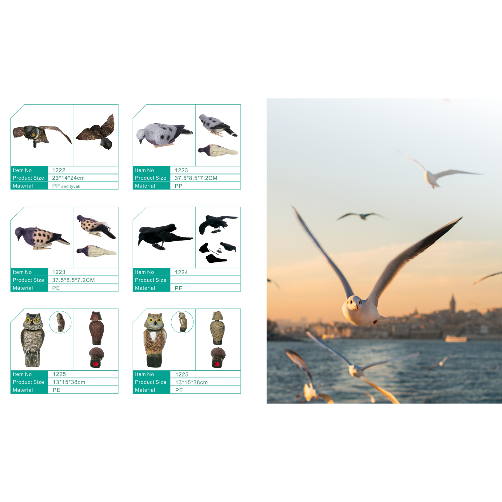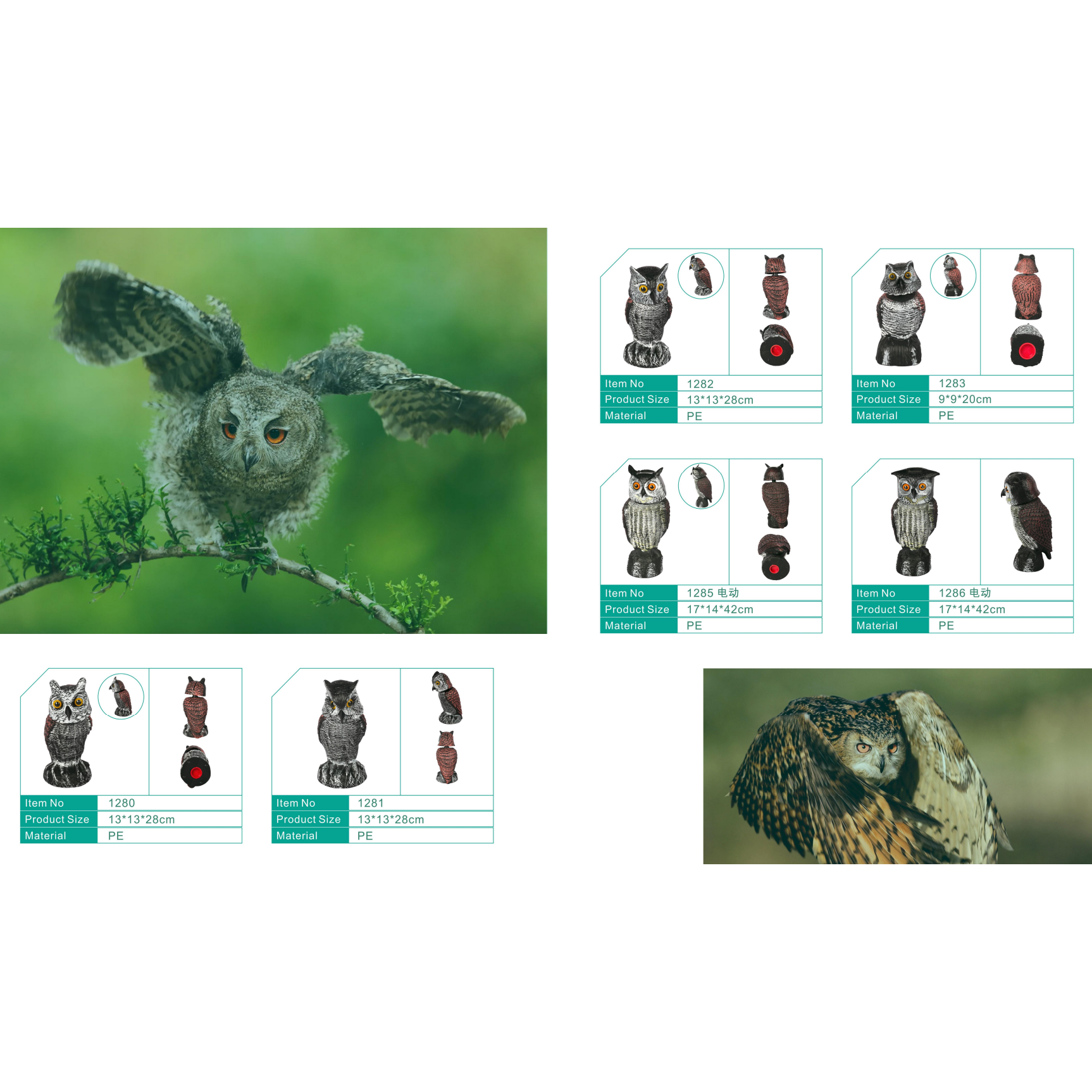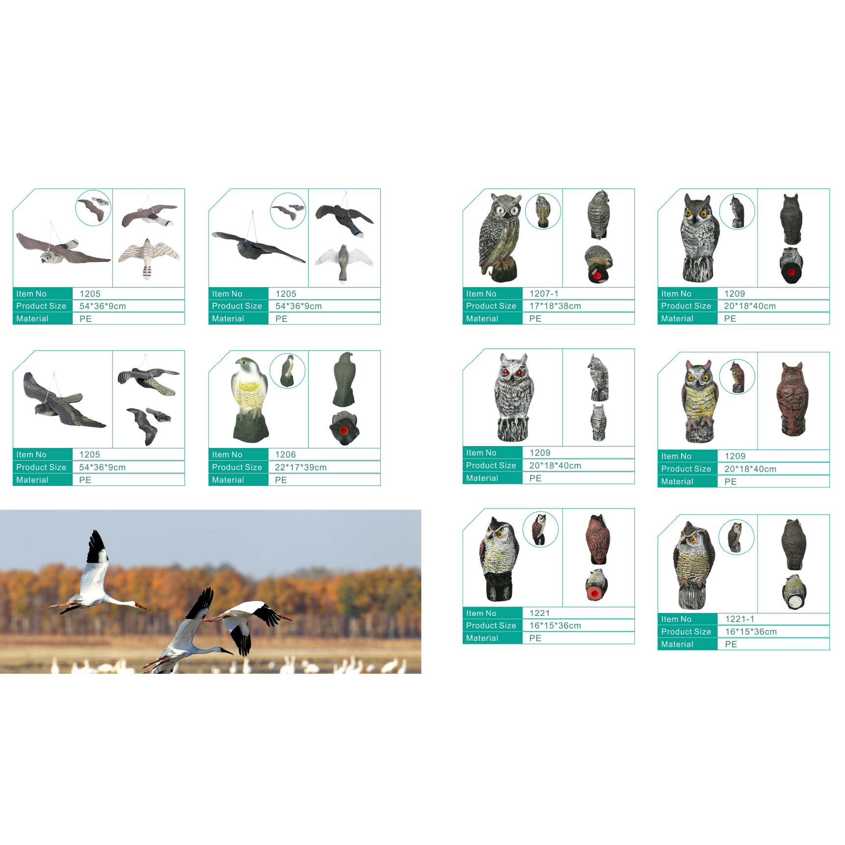 Our animal decoy range is designed to meet the diverse needs of overseas buyers, offering realistic solutions for garden, hunting, and wildlife management applications. The collection includes lifelike owl decoys, eagle decoys, duck decoys, snow goose decoys, pigeon decoys, magpie decoys, flamingos, herons, cranes, and more.